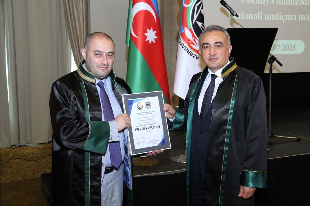 Sədr Prezidentin 3 iyun 2025-ci il tarixli Sərəncamı ilə yeni təyin olunan hakimlər arasında 9 nəfərin Kollegiya üzvü olduğunu çox yüksək göstərici kimi qiymətləndirərək, bu rəqəmin vəkilliyin ölkənin məhkəmə sistemində də etibarlı kadr bankına çevrildiyini ifadə edib. VK-nın həm Məhkəmə-Hüquq Şurasında, həm də Hakimlərin Seçki Komitəsində uğurla təmsil olunduğunu dilə gətirən sədr hakim təyin olunan keçmiş vəkillərin məhkəmə-hüquq islahatlarına töhfə verəcəyinə inandığını bildirib, onların hər zaman qanunun aliliyinə, etik davranış qaydalarına sadiq qalacağına əmin olduğunu söyləyib, bu şərəfli missiyada uğurlar arzulayıb.