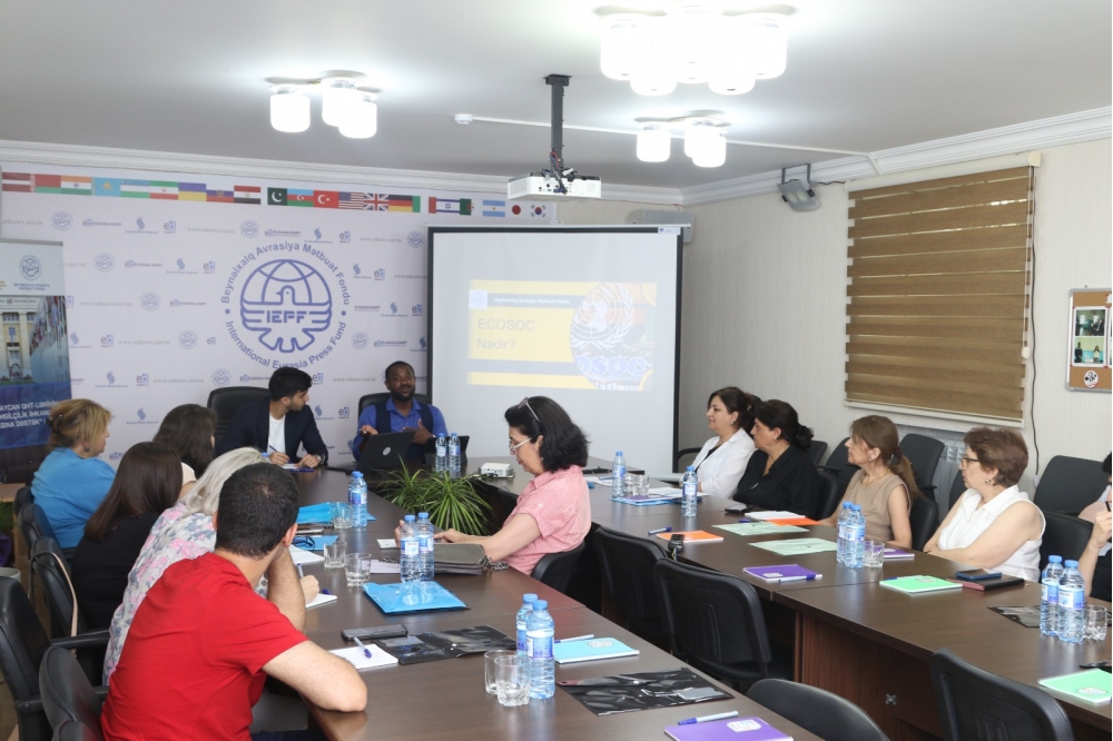 İyulun 18-də Beynəlxalq Avrasiya Mətbuat Fondunun (BAMF) ofisində yerli QHT-lərin BMT-nin İqtisadi və Sosial şurasında (ECOSOC) təmsil olunmaları ilə bağlı ilk təlim keçirilib.