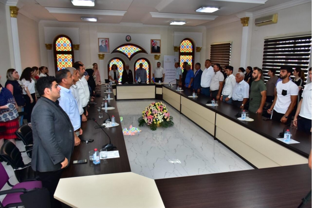 Tədbirdə torpaqlarımızın azadlığı uğrunda canından keçən qəhrəman şəhidlərimizin əziz xatirəsi bir dəqiqəlik sükutla ehtiramla yad edildi, Azərbaycan Respublikasının Dövlət himni səsləndirildi.