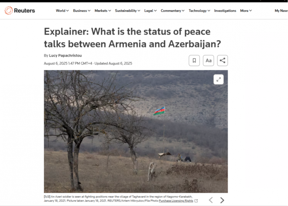 Məqalədə qeyd olunur ki, Qarabağ bölgəsi beynəlxalq səviyyədə Azərbaycanın ərazisi kimi tanınıb və Sovet İttifaqının süqutundan sonra ermənilər tərəfindən işğala məruz qalıb. Lakin 2020-ci və 2023-cü illərdə Azərbaycan həmin əraziləri azad edib. “Sülh sazişinin imzalanmasının qarşısında duran əsas maneələrdən biri Ermənistanın konstitusiyası məsələsidir. Azərbaycan Ermənistandan ölkənin 1990-cı il müstəqillik bəyannaməsinə istinad edən konstitusiyanın preambulasını dəyişdirməyi tələb edir...Bakı Ermənistan konstitusiyasında Qarabağa istinad edilməsini Azərbaycana ərazi iddiası kimi qiymətləndirir”, -deyə agentlik vurğulayır.