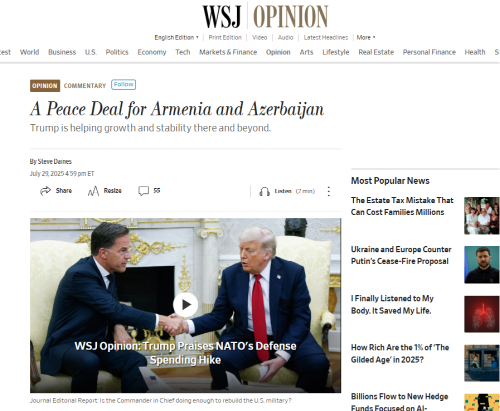Son günlərdə dünya KİV-ləri avqustun 8-də Vaşinqtonda ABŞ, Azərbaycan və Ermənistan liderlərinin tarixi görüşünü fəal şəkildə müzakirə edib. Görüş çərçivəsində Bakı və İrəvan arasında münasibətlərin normallaşmasına yönəlmiş sənədlər imzalanıb. Xarici KİV-lərin qiymətləndirmələrinə görə, bu sammit Cənubi Qafqazda çoxillik münaqişənin həllində mühüm addım olub, yeni nəqliyyat marşrutuna diqqəti cəlb edib və regionda Rusiyanın təsirinin azalması ilə bağlı müzakirələrə səbəb olub.
