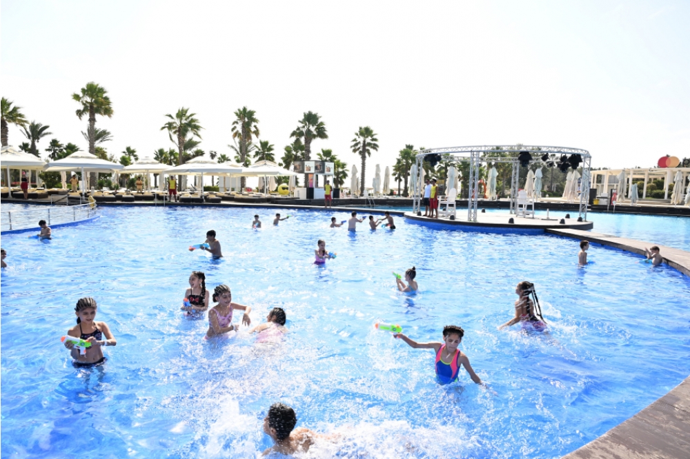 Uşaqlar həm də hovuzda doyunca əylənib, müxtəlif oyunlarda, o cümlədən köpük şouda iştirak ediblər.