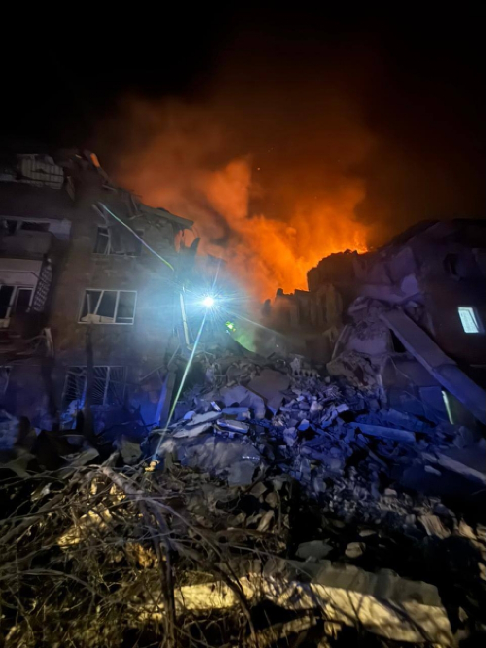 Kiyevin Darnitski rayonunda ən azı altı obyektə, o cümlədən 5 və 16 mərtəbəli binalara, həmçinin fərdi evə və uşaq bağçasına ziyan dəyib.