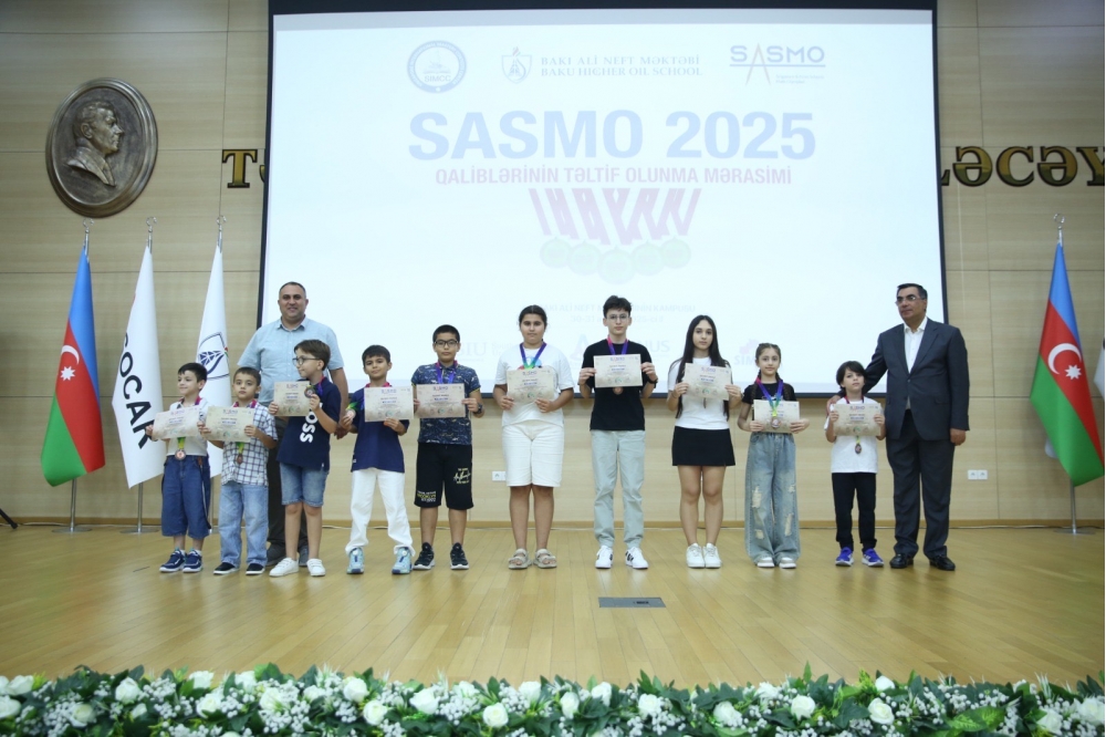 Dünyanın ən nüfuzlu riyaziyyat olimpiadalarından biri olan SASMO (Singapore and Asian Schools Math Olympiad) qaliblərinin medal təqdimetmə mərasimi Bakı Ali Neft Məktəbində keçirilib.