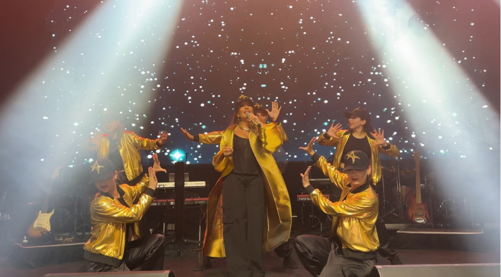 “İki sahil” xəbər verir ki, bütün çıxışları üçün xüsusi hazırlaşan pop ulduz bu dəfə baş aksesuarı ilə seçilib. Səhnəmizin əfsanəsi rəqqasları ilə birlikdə R&B tərzində olan geyimdə səhnəyə çıxıb. Xüsusi diqqətçəkən məqam isə sənətçinin şəxsi, yeni hazırlanan loqosunun yer aldığı papaqların görünməsi idi.