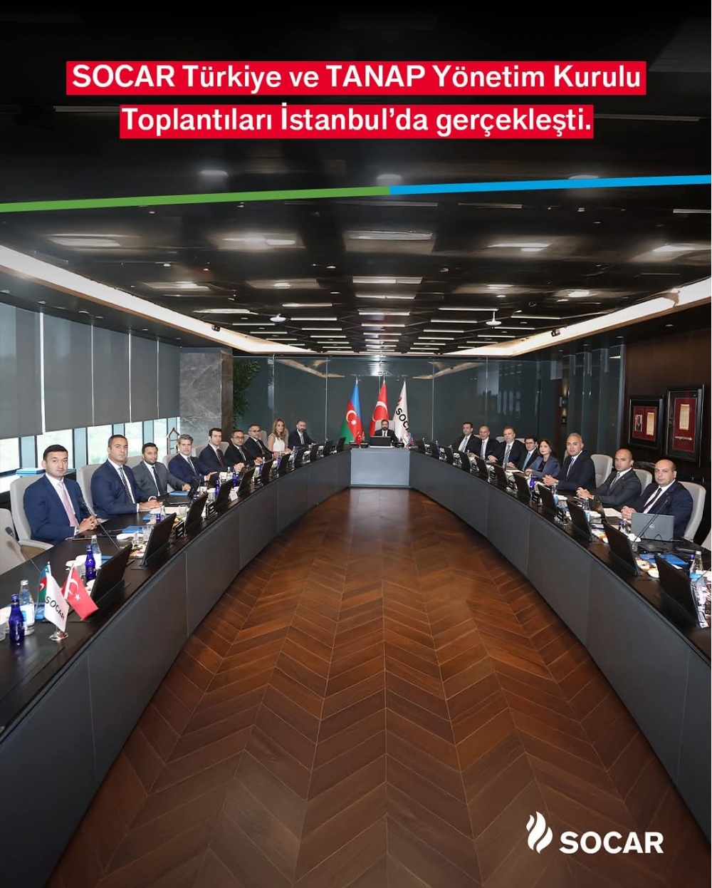 İstanbul şəhərində Azərbaycan Respublikası Dövlət Neft Şirkətinin Türkiyədəki törəmə şirkəti olan "SOCAR Türkiyə"nin İdarə Heyətinin iclası, eləcə də Trans-Anadolu Qaz Boru Kəməri (TANAP) layihəsinin İdarə Heyətinin toplantısı keçirilib. Toplantılarda cari ilin fəaliyyətinə dair ətraflı təhlillər aparılıb, qarşıdakı dövr üçün prioritet istiqamətlər və strateji hədəflər müəyyənləşdirilib.