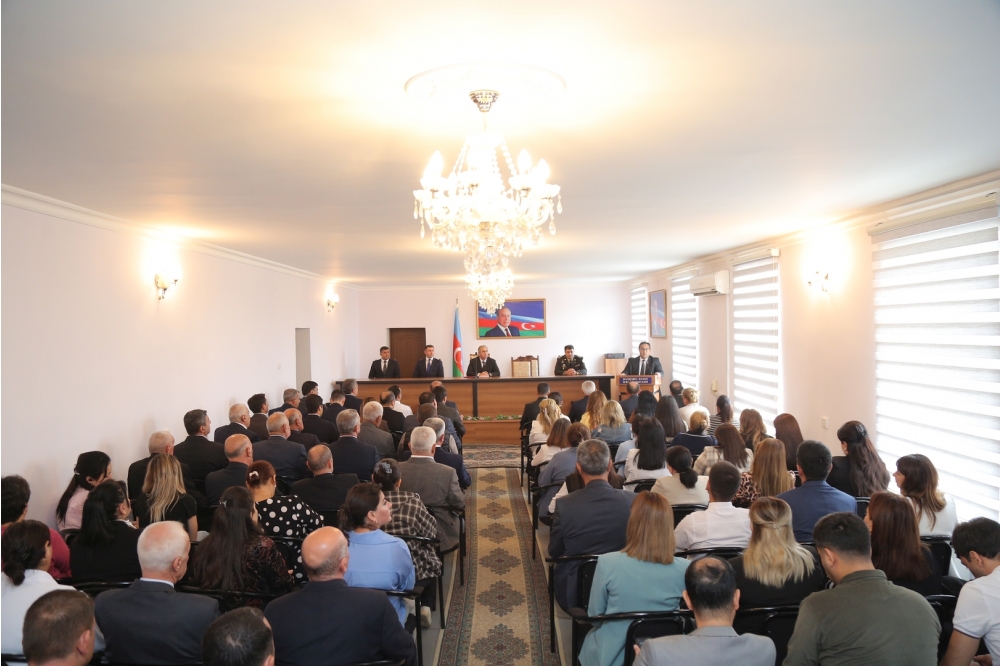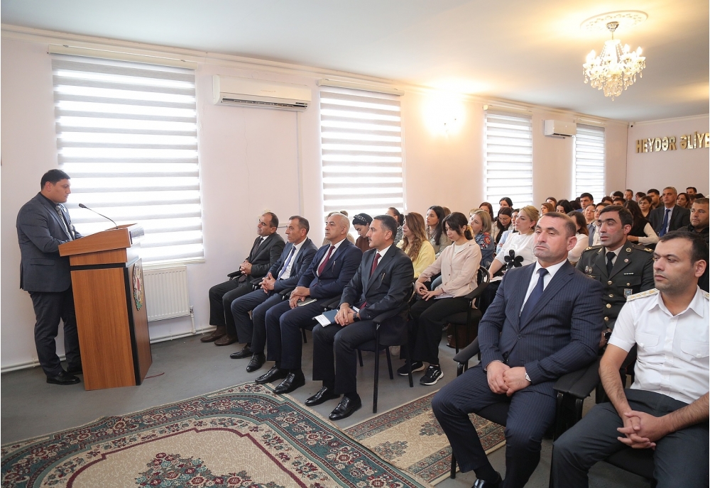 Daha sonra çıxış edənlər Daxili Qoşun Hərbi hissəsinin Tərbiyə bölməsinin rəisi Ramin Əhmədov, 4 saylı tam orta məktəbin Tarix müəllimi Xəyalə Əfəndiyeva və Vətən müharibəsi iştirakçısı, 6 saylı tam orta məktəbin psixoloqu Salman Mirzəzadə bildirdilər ki, 2023-cü il sentyabrın 19-da Azərbaycanın Qarabağ iqtisadi rayonunda törədilən genişmiqyaslı təxribatların qarşısının alınması və Ermənistan silahlı qüvvələrinin qalıqlarının tərksilah edilərək torpaqlarımızdan çıxarılması, həmin ərazilərdə Azərbaycan Respublikası konstitusiya quruluşunun bərpa edilməsi məqsədilə antiterror əməliyyatına başlanılıb. Cəmi 23 saat davam etmiş və sentyabrın 20-də başa çatmış əməliyyat nəticəsində rəşadətli Azərbaycan Ordusu qarşısına qoyulmuş bütün vəzifələri yüksək peşəkarlıqla yerinə yetirib. Beləliklə, növbəti parlaq Qələbə nəticəsində Azərbaycan Respublikasının suverenliyi tam bərpa edilib. Azərbaycan xalqının həyatında müstəsna əhəmiyyət kəsb edən şanlı Zəfər sayəsində bu gün Azərbaycan Respublikasının Dövlət Bayrağı suverenliyimizin bərqərar olduğu bütün ərazilərdə əzəmətlə dalğalanmaqdadır.