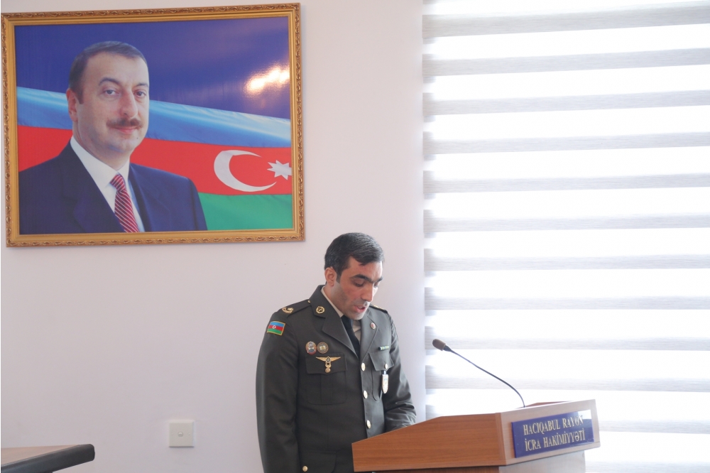 YAP Hacıqabul rayon təşkilatının sədri İsmayıl İbrahimov çıxış edərək qeyd etdi ki, 2023-cü il sentyabrın 19-da Azərbaycanın Qarabağ iqtisadi rayonunda törədilən genişmiqyaslı təxribatların qarşısının alınması və erməni separatçılarının tərksilah edilərək torpaqlarımızdan çıxarılması, həmin ərazilərdə Azərbaycan Respublikası konstitusiya quruluşunun bərpa edilməsi məqsədilə antiterror əməliyyatına başlanmışdır. Cəmi 23 saat davam etmiş və sentyabrın 20-də başa çatmış əməliyyat nəticəsində rəşadətli Azərbaycan Ordusu qarşısına qoyulmuş bütün vəzifələri yüksək peşəkarlıqla yerinə yetirmişdir. Beləliklə, növbəti parlaq Qələbə nəticəsində Azərbaycan Respublikasının suverenliyi tam bərpa edilmişdir. Azərbaycan xalqının həyatında müstəsna əhəmiyyət kəsb edən şanlı Zəfər sayəsində bu gün Azərbaycan Respublikasının Dövlət Bayrağı suverenliyimizin bərqərar olduğu bütün ərazilərdə əzəmətlə dalğalanmaqdadır.