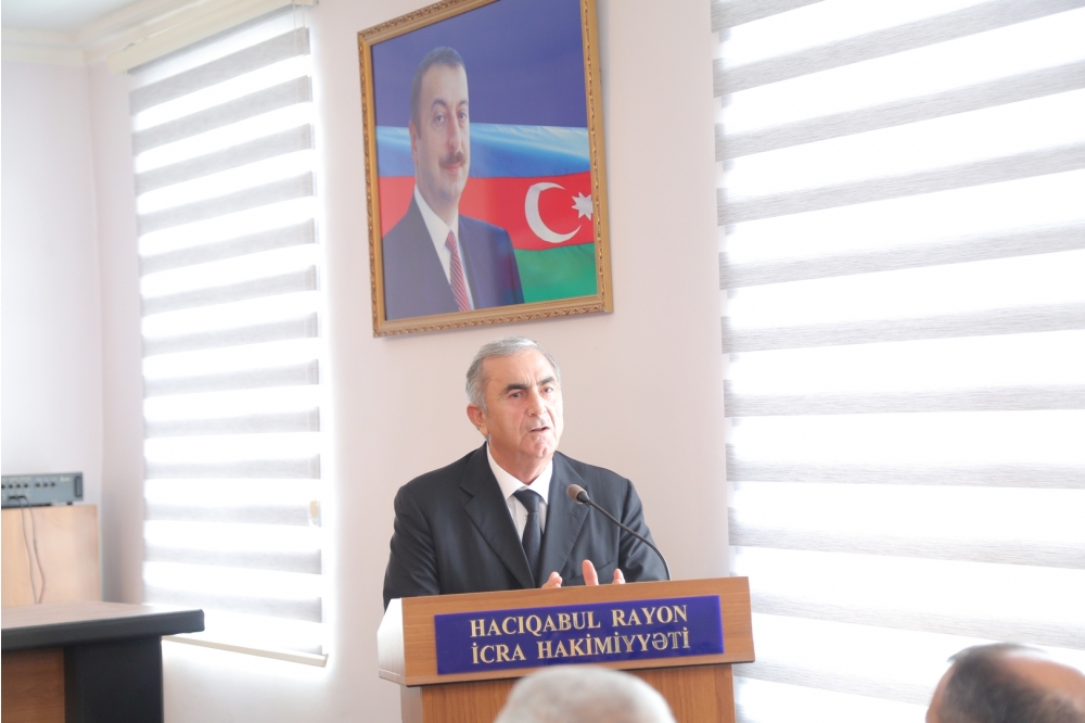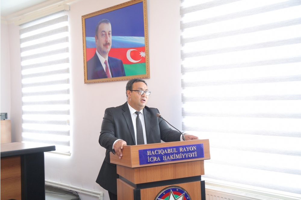 Tədbirdə çıxış edən Hacıqabul rayon İcra Hakimiyyətinin başçısı Sevindik Hətəmov bildirdi ki, “20 sentyabr - Dövlət Suverenliyi Günü” mövcudluğunun və institusional davamlılığının əsasıdır. Özünün siyasi, mədəni tarixinə, taleyinə sahib çıxmaq, müstəqil dövlətini yaradaraq inkişaf etdirmək hər xalqa nəsib olmur. Buna sahib olmaq xalqın ictimai-siyasi həyatında ən böyük nailiyyətidir. Tarix boyunca qarşılaşdığı iqtisadi, siyasi, hərbi çətinliklərə, işğala baxmayaraq, xalqımızın müstəqillik, dövlətçilik arzusu və mübarizəsi əsrlər boyu davam edib, heç bir qüvvə onun bu əzmini sındıra bilməyib.