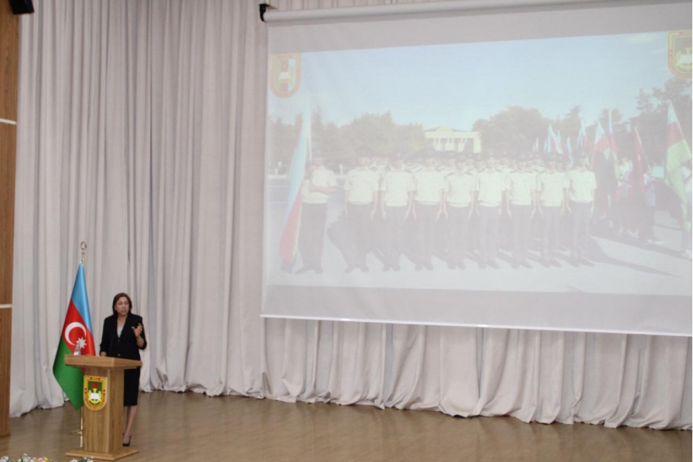 Sonra kollecin 1-ci və 2-ci kurs kursantlarının hazırladıqları bədii kompozisiya təqdim olunub.