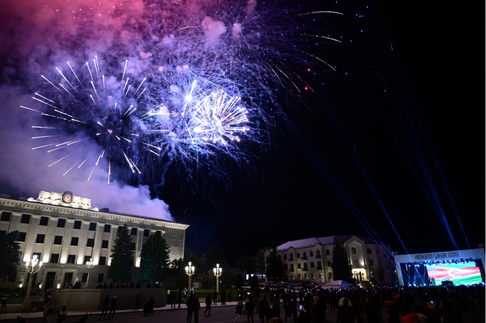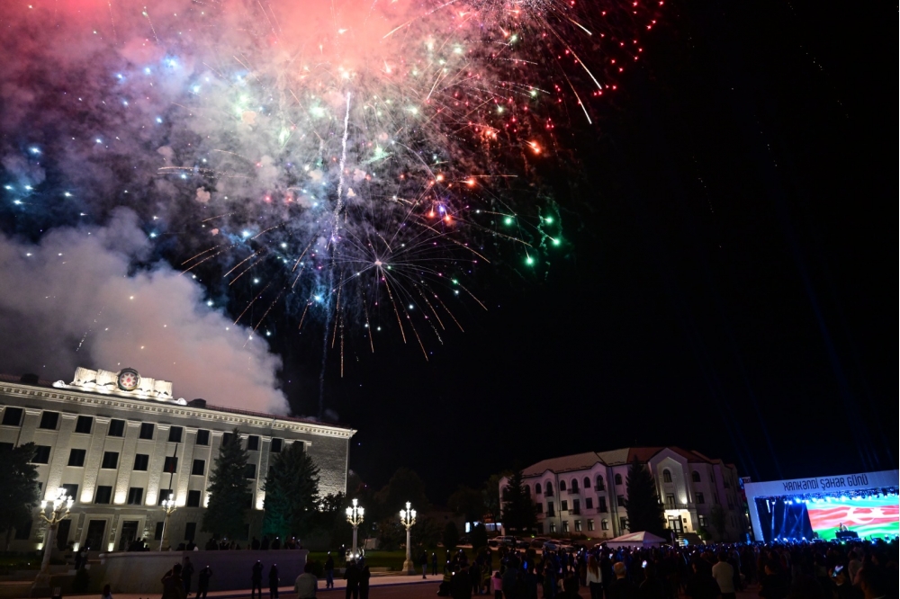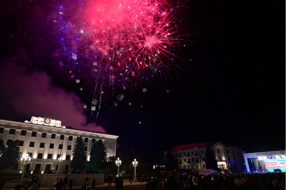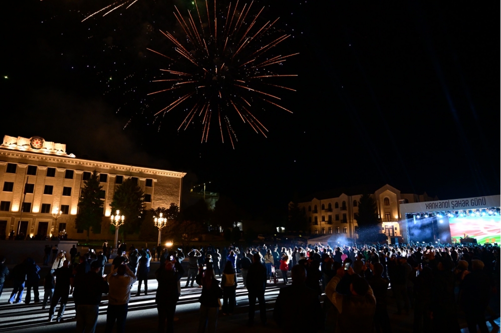 Konsertdən sonra Xankəndinin mərkəzi meydanında möhtəşəm atəşfəşanlıq olub. Yaranmış ecazkar mənzərə baxışlarını azad Qarabağın rəngbərəng işıqlarla süslənən səmasına dikən tamaşaçılarda bölgənin yeni növrağına, parlaq gələcəyinə olan inamı daha da artırıb.