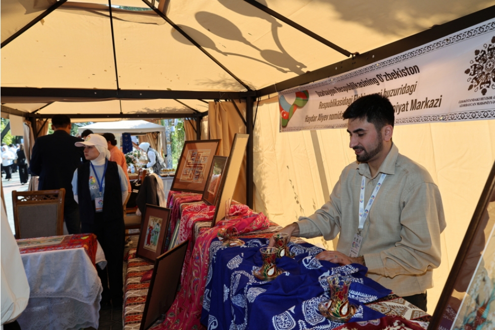 Bildirilib ki, Mərkəzin guşəsində Azərbaycan mədəniyyəti, tarixi və dövlətçiliyinə dair nəşrlər, həmçinin özbək dilində çap olunmuş kitablar təqdim olunub. Bununla yanaşı, Azərbaycan sənətkarlarının hazırladıqları suvenirlər, əl işləri, xalçalar və digər məhsullar da nümayiş etdirilib.