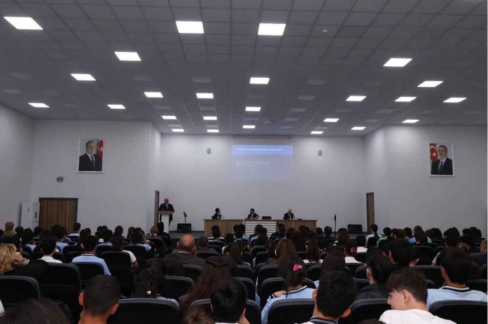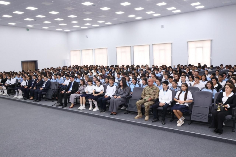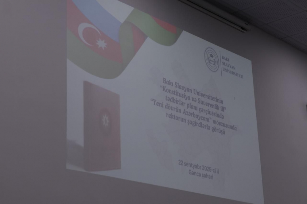 Sentyabrın 22-də Bakı Slavyan Universitetinin (BSU) “Konstitusiya və Suverenlik İli” tədbirlər planı çərçivəsində “Yeni dövrün Azərbaycanı”mövzusunda Gəncə şəhəri 29 nömrəli tam orta məktəbdə rektorun şagirdlərlə növbəti görüşü baş tutub. “Yeni dövrün Azərbaycanı” mövzusunda təşkil edilən görüşdə BSU-nun rektoru Anar Nağıyev, Gəncə-Daşkəsən Regional Təhsil İdarəsin sədri Elçin Kərimov, Yeni Azərbaycan Partiyasının (YAP) Gəncə Şəhər Təşkilatının sədri Bayram Aslanov iştirak ediblər.