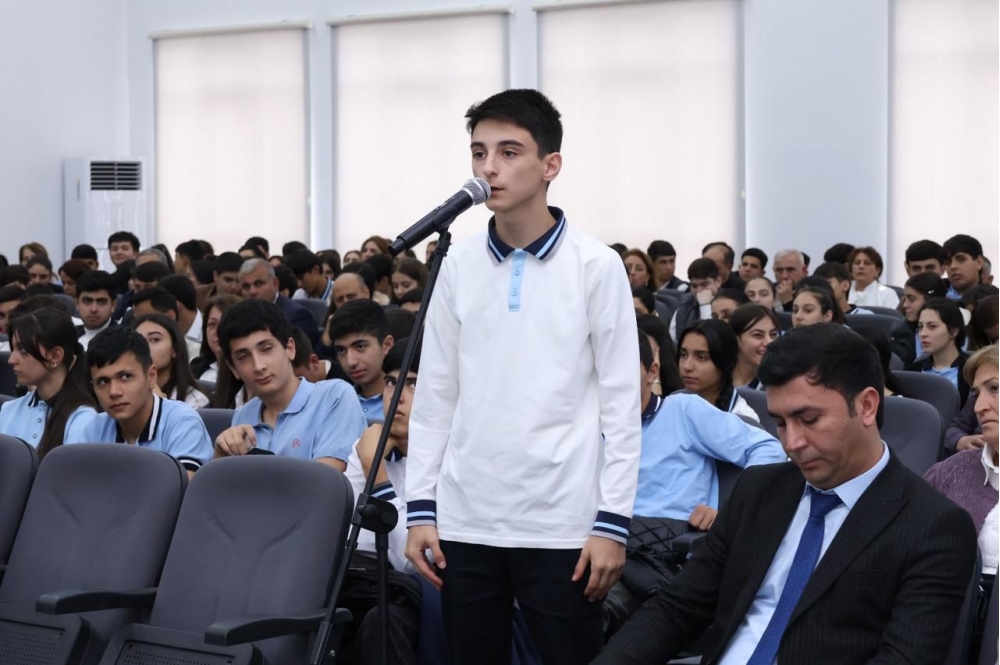 Görüşün interaktiv bölməsində şagirdlər fəal iştirak edərək BSU-da təhsil almaq, nümunəvi şagird necə olmalıdır, xarici mübadilə proqramları bağlı onları maraqlandıran sualları ünvanlayaraq geniş fikir mübadiləsi aparıblar.