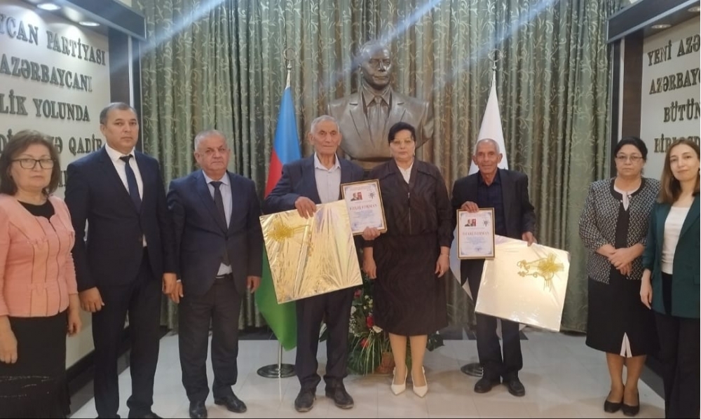 Görüş daxilində YAP Bərdə rayon təşkilatının sədri Faqət Şadlinskaya veteranları Ulu öndər Heydər Əliyevin büstü önündə təşkilatın Fəxri- Fərmanı və hədiyyə ilə mükafatlandırıb.