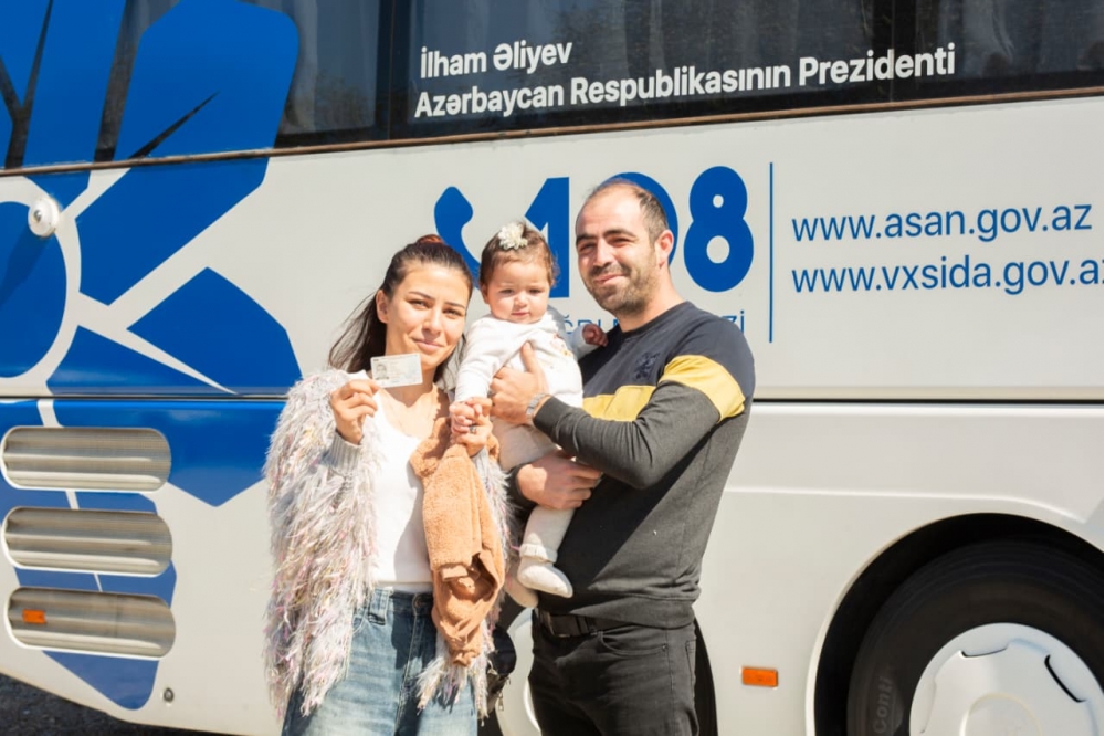 Artıq 1 ildən çoxdur doğma torpağına qayıdaraq yanacaqdoldurma məntəqəsində işləyən və gələcəklərini bu torpaqlarda qurmağı planlaşdıran Ruslan Mahmudov isə “ASAN xidmət”dən yararlanmağa ailəvi - daim gülümsəyən həyat yoldaşı Əzizə xanım və 6 aylıq qızı Ömürlə gəlib. Ruslan deyir ki, bu, onlar üçün sanki həm də bir əyləncə, hansısa bayram tədbiri kimi bir şeydir: