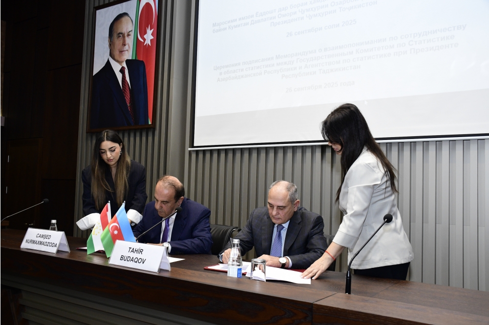 “İki sahil” xəbər verir ki, görüş çərçivəsində Azərbaycan Respublikasının Dövlət Statistika Komitəsi ilə Tacikistan Respublikasının Prezidenti yanında Statistika Agentliyi arasında “Statistika sahəsində əməkdaşlıq haqqında Anlaşma Memorandumu” imzalanıb. Memorandumu Dövlət Statistika Komitəsinin sədri Tahir Budaqov və Tacikistan Respublikasının Prezidenti yanında Statistika Agentliyinin direktoru Camşed Nurmaxmadzoda imzalayıblar.