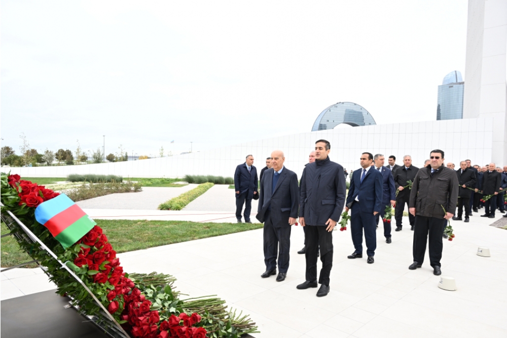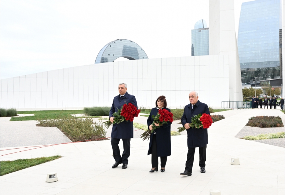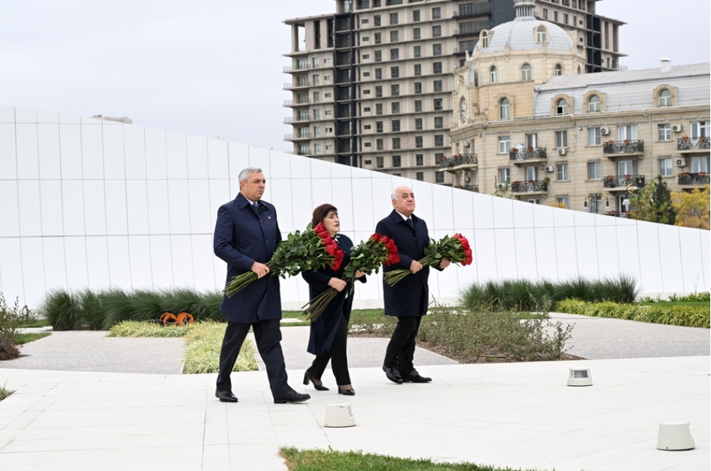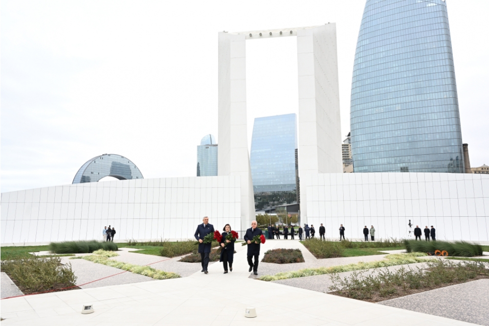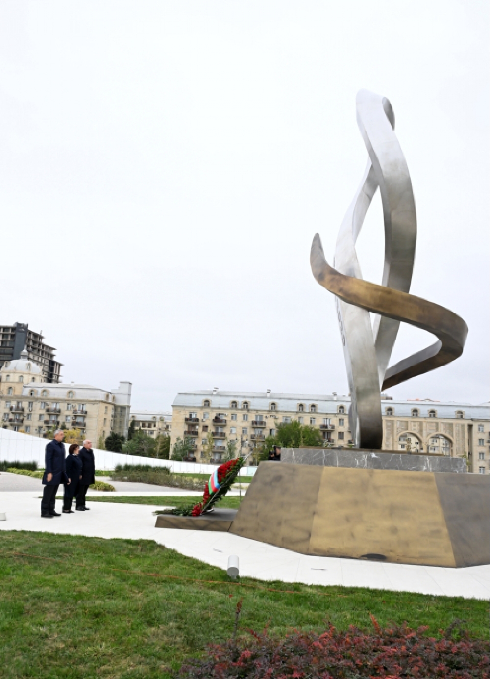 “İki sahil” xəbər verir ki, dövlət və hökumət rəsmiləri xatirə daşının önünə gül dəstələri düzərək şəhidlərin əziz xatirəsini ehtiramla anıblar.