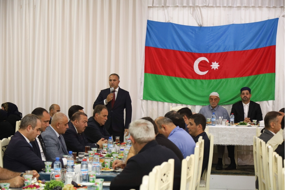 Daha sonra rayon İcra Hakimiyyəti tərəfindən şəhidlərin xatirəsinə ehsan süfrəsi təşkil olunub. Mərasimdə rayon İcra Hakimiyyətinin başçısı Rafiq Quluyev çıxış edərək 2020-ci ilin 27 sentyabr tarixində Ali Baş Komandanın rəhbərliyi ilə rəşadətli Azərbaycan Ordusunun işğal olunmuş torpaqlarımızın geri alınması məqsədilə zəfər yürüşünə başlaması ilə tariximizin şanlı səhifələrinin yazıldığını, bu günün Anım Günü kimi qeyd edilməsinin şəhid ruhlarına, şəhidlərin doğmalarına ali ehtiramın göstəricisi olduğunu diqqətə çatdırıb. Rafiq Quluyev şəhidlərin ailə üzvlərinə və yaxınlarına Allahdan səbir diləyib və bildirib ki, şəhidlərin qanı yerdə qalmayıb. Azərbaycanın qəhrəman ordusu onların qisasına layiqincə alıb. Qəhrəman hərbçilərimizin şücaəti, rəşadəti hesabına, şəhidlərimizin qanı-canı bahasına bütün dünyanın Azərbaycanın şanlı qələbəsinin şahidi olduğunu, vətənimizin ərazi bütövlüyünü bərpa olunduğunu, üçrəngli bayrağımızın işğaldan azad edilən torpaqlarımızda dalğalandığını, bütün bunlara görə qalib Ali Baş Komandana, şəhidlərimizə və qazilərmizə minnətdar olduğumuzu vurğulayıb. RİH başçısı bu gün işğaldan azad olunmuş torpaqlarda geniş vüsət almış bərpa və yenidənqurma işlərinin sürətlə aparıldığını, soydaşlarımızın öz yurdlarına döndüyünü və Qarabağda həyatın yenidən canlandığını vurğulayıb.