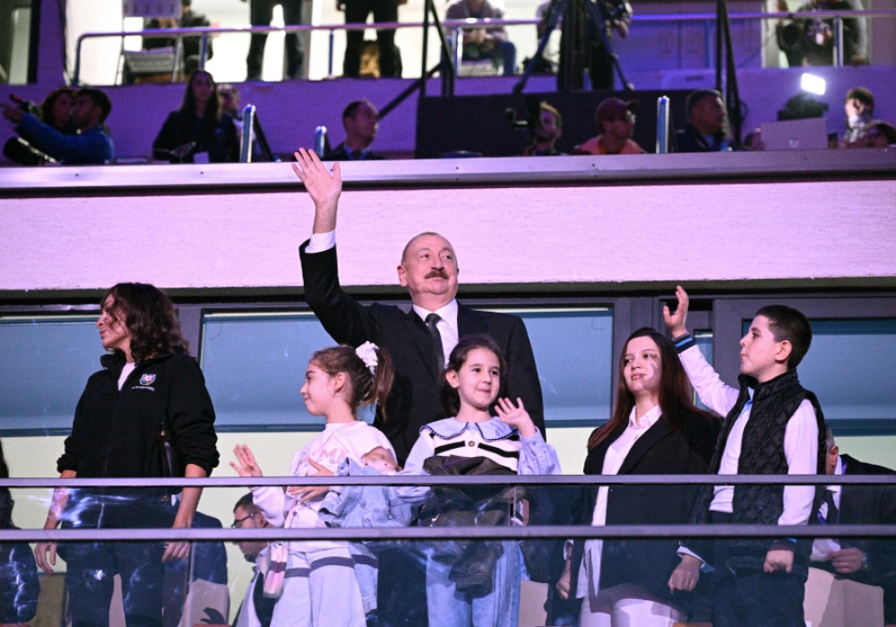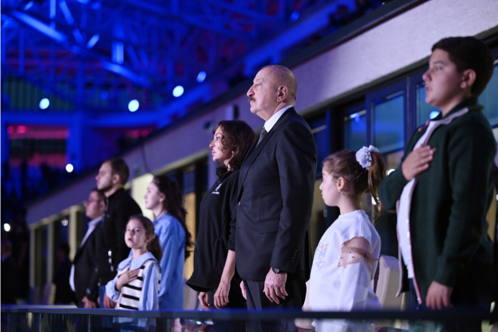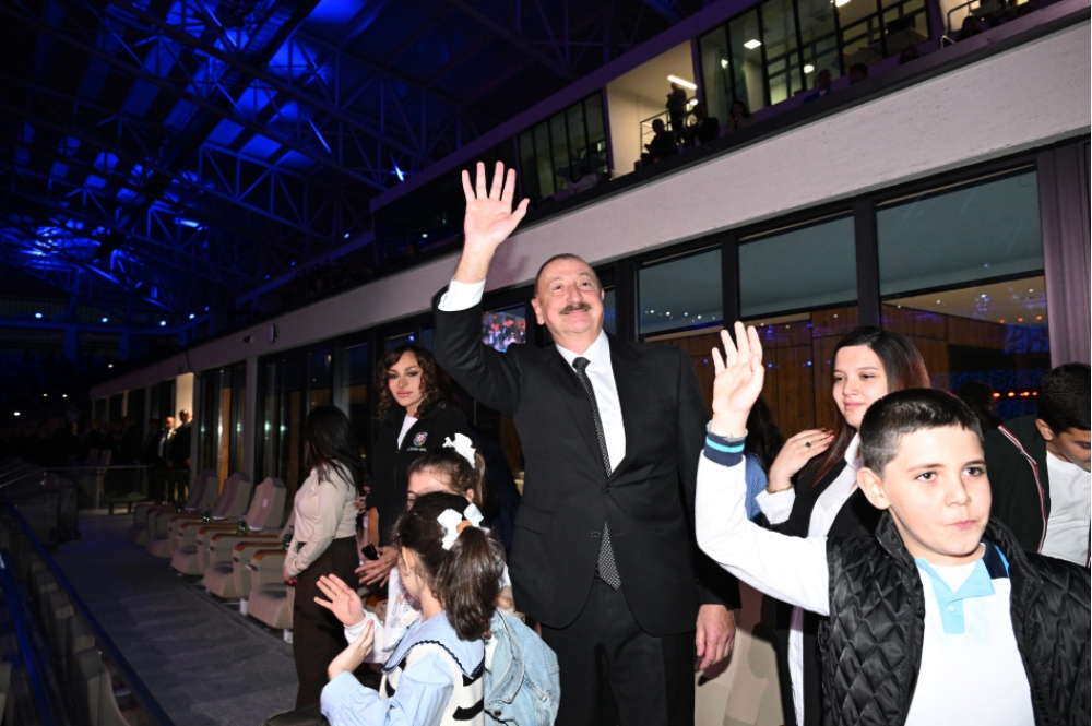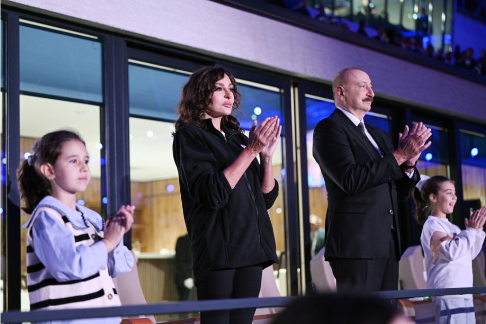 “İki sahil” xəbər verir ki, Azərbaycan Respublikasının Prezidenti İlham Əliyev və birinci xanım Mehriban Əliyeva tədbiri izləyiblər.