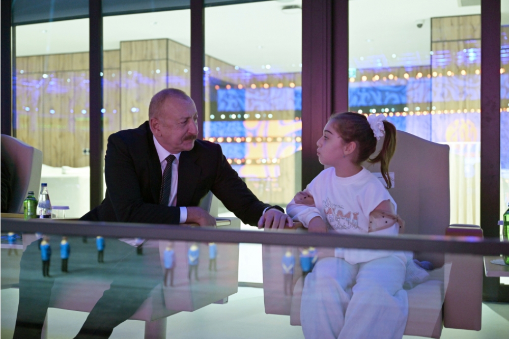 “İki sahil” xəbər verir ki, tədbirdən əvvəl Azərbaycan Respublikasının Prezidenti İlham Əliyev və birinci xanım Mehriban Əliyeva Vətən müharibəsi zamanı Gəncəyə raket hücumları nəticəsində valideynlərini, ailə üzvlərini və yaxın qohumlarını itirmiş, həmçinin xəsarət almış uşaqlarla görüşüblər.
