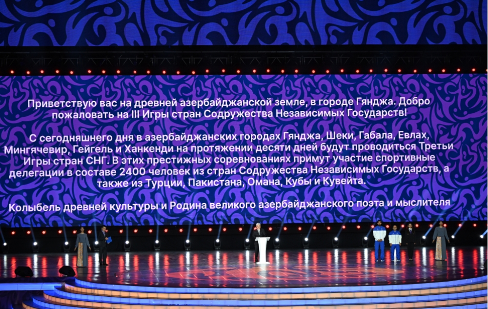 Sizi Azərbaycanın qədim diyarı Gəncə şəhərində salamlayır, Müstəqil Dövlətlər Birliyi ölkələrinin III Oyunlarına xoş gəlmisiniz deyirəm.