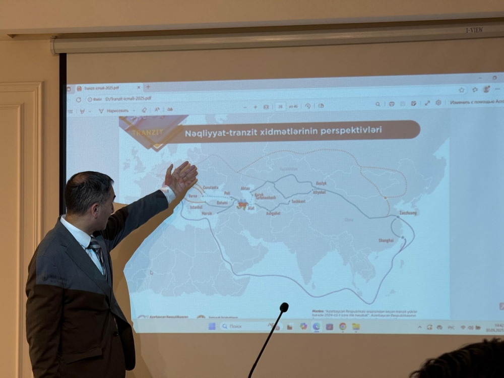 İİTKM-in nəqliyyat-logistika sahəsini əhatə edən daha bir nəşri - “Tranzit İcmalı”nın məsləhətçisi Rauf Ağamirzəyev isə çıxışında Orta Dəhlizin beynəlxalq logistika sistemində rolu, dəhliz boyunca tranzit xidmətlərinin optimallaşdırılması, rəqəmsal nəqliyyat modelləri və Azərbaycanın bu sahədə artan imkanları barədə məlumat verib.