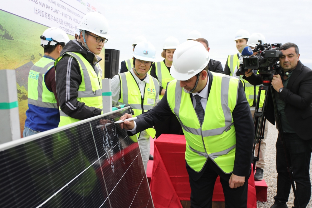 445 MVt gücündə Biləsuvar Günəş Elektrik Stansiyasında ilk günəş panelinin quraşdırılması mərasimi keçirilib.