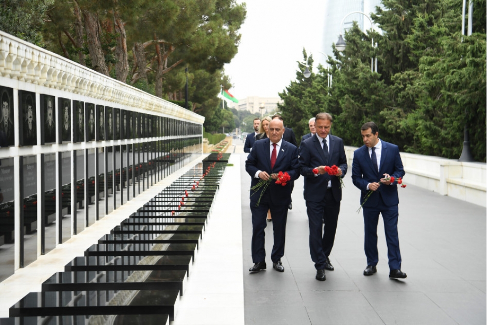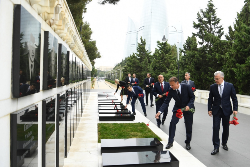 “İki sahil” xəbər verir ki, sonra qonaqlar Şəhidlər xiyabanında Azərbaycanın müstəqilliyi və ərazi bütövlüyü uğrunda mübarizədə canlarından keçmiş qəhrəman Vətən övladlarının xatirəsini ehtiramla yad edib, “Əbədi məşəl” abidəsinin önünə əklil qoyublar.
