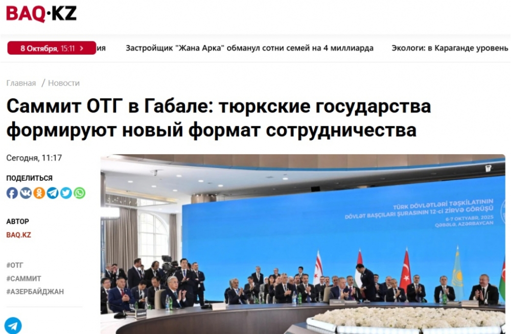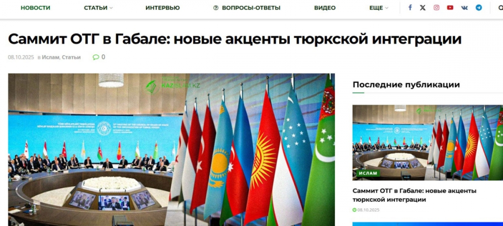 “Kazislam.kz” yazır ki, Qəbələ Zirvə Görüşü sadəcə türk liderlərinin növbəti dəfə bir araya gəlməsi deyil, eyni zamanda, Türk dünyasının institusional güclənməsinin mühüm mərhələsi olub. “Geosiyasi gərginliyin artması, qlobal arxitekturanın yenidən müəyyənləşdirilməsi və ənənəvi güc mərkəzlərinin böhranı fonunda Türk Dövlətləri Təşkilatı tədricən ortaq tarixi və mədəni dəyərlərə, şəffaflığa və texnoloji inkişafa əsaslanan yeni regional həmrəylik modelinin formalaşdırılması platformasına çevrilir”, -deyə nəşr qeyd edir.