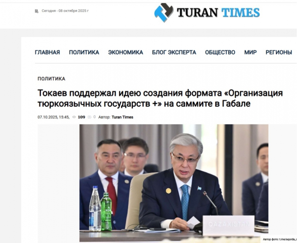 “Turantimes.kz” nəşri xəbər verir ki, Qazaxıstan beynəlxalq əməkdaşlığı gücləndirmək məqsədi daşıyan “Türk Dövlətləri Təşkilatı - Plyus” adlı yeni formatın yaradılması ideyasını dəstəkləyir.