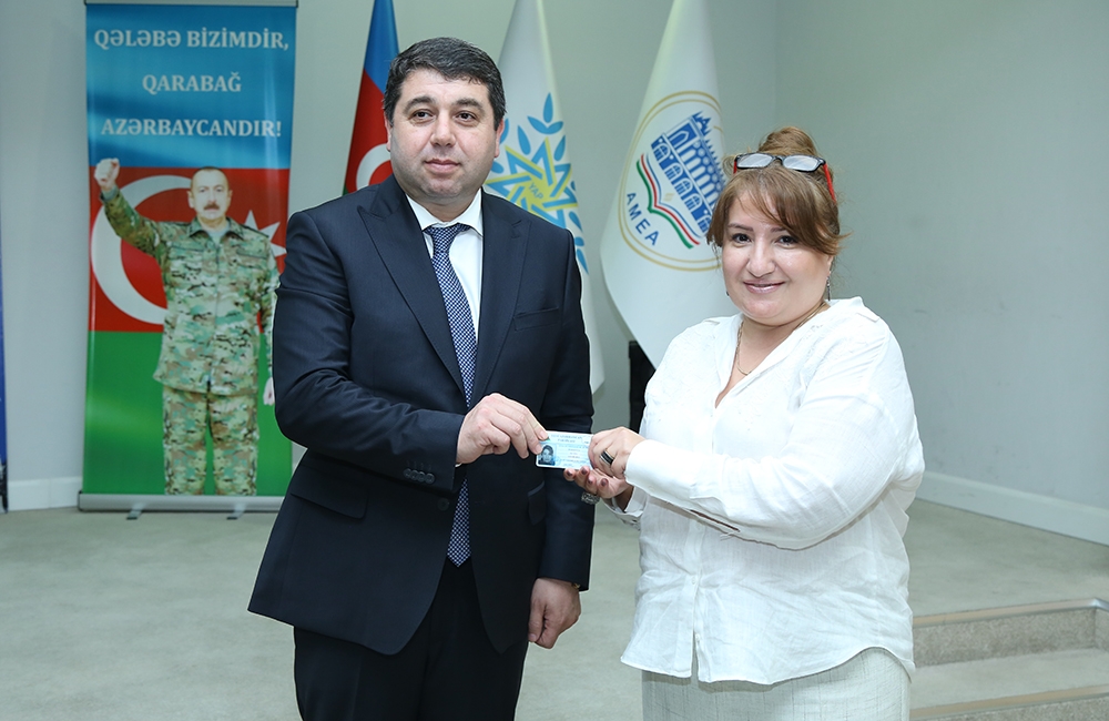 Daha sonra YAP sıralarına qəbul olunan AMEA əməkdaşlarına üzvlük vəsiqələri təqdim olunub.