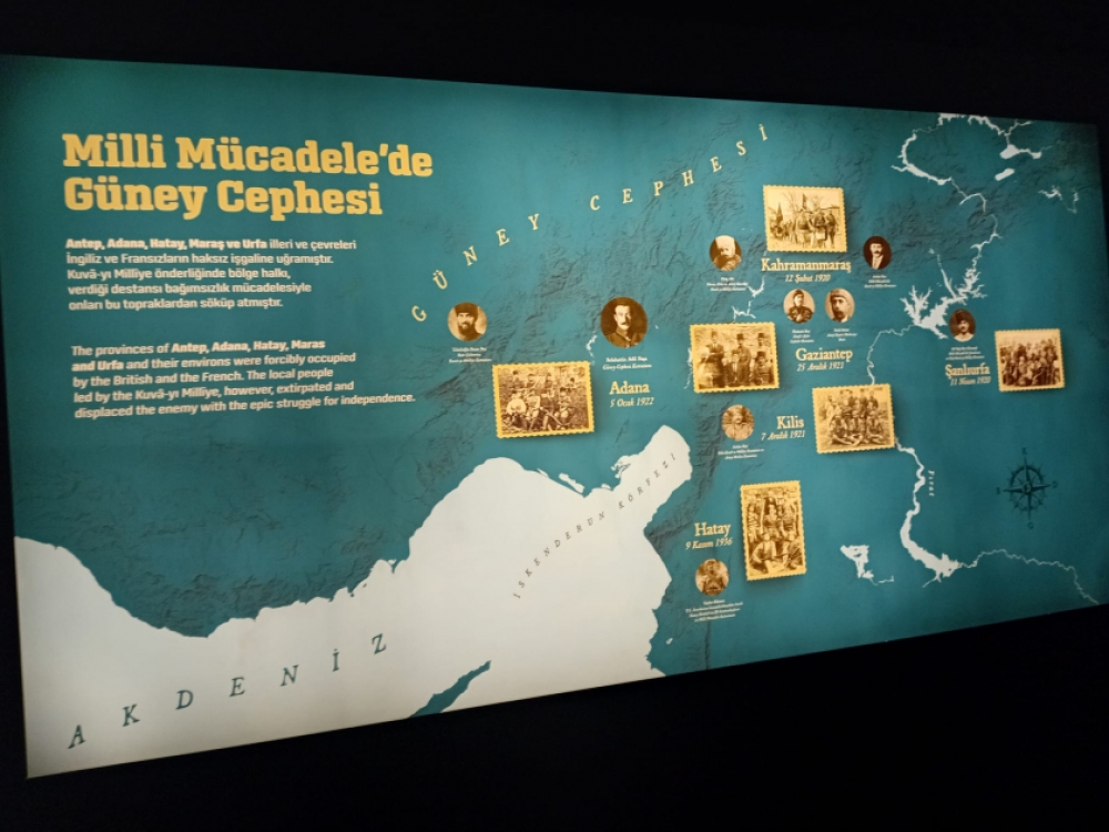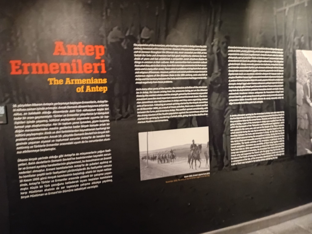 “İşğal başlayandan sonra ermənilər Antepdə türklərin yaşadıqları məhəllələri tərk edərək dinc əhaliyə qarşı kütləvi cəza tədbirlərinə yol açmağa başlayıblar”, - deyən muzey əməkdaşı məhz ermənilərin təkidi ilə fransızların Anadolunun onların nəzarətində olan ərazilərini “Kilikiya” adlandırmağa başladığını qeyd edib. “Erməni legionu”nun fotoşəkilləri, eləcə də Antepin işğalı zamanı ermənilərin istifadə etdiyi silahlar və uniformalar muzey eksponatları arasında var. Burada, həmçinin bir yerli erməninin “bütün bunlardan sonra türklərlə üz-üzə necə gələcəyik” etirafı yer alır. Tarixçi 1919-cu il noyabrın 5-də erməni tərcüməçinin müşayiəti ilə Antep məscidlərindən birinə gələn fransızların dini binadan türk bayrağını sökməsinin xalqın səbrini daşıran son damla olduğunu xatırladıb.