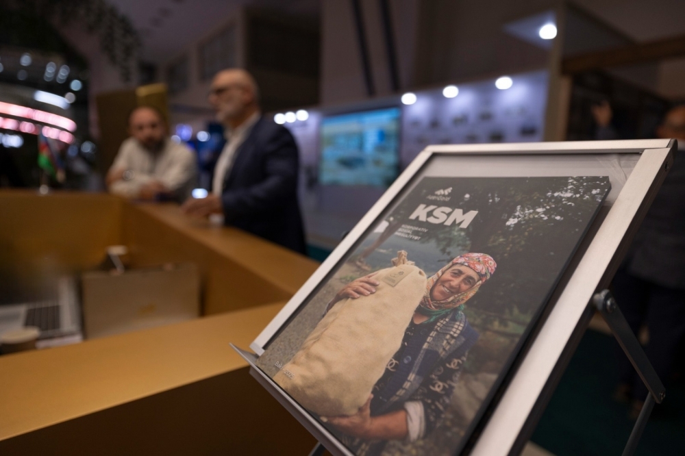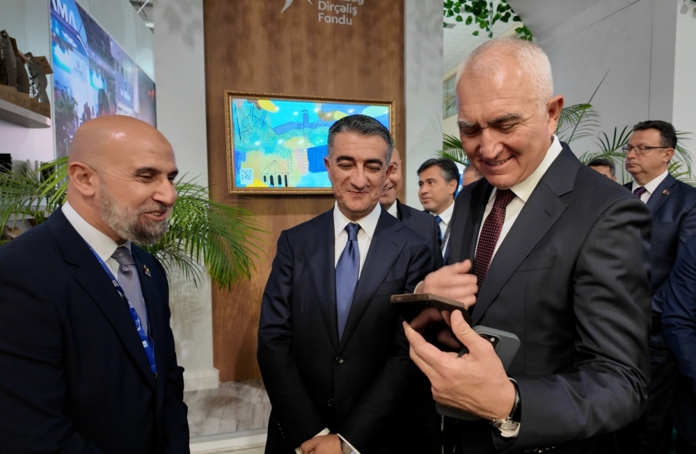 Sərgi pavilyonunda Cəmiyyət tərəfindən müzəffər Ali Baş Komandan İlham Əliyevin rəhbərliyi ilə işğaldan azad edilmiş Qarabağ və Şərqi Zəngəzur iqtisadi rayonlarında icra edilən mühüm layihələrə dair təqdimatlar nümayiş olunub.