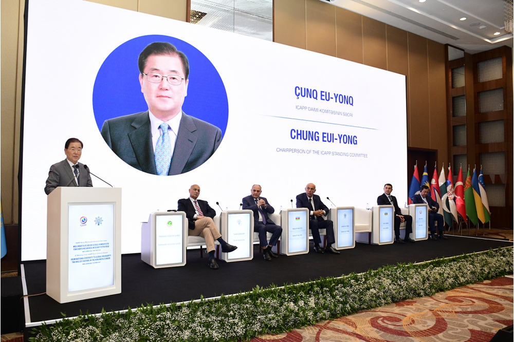 Sonra çıxış edən  ICAPP Daimi Komitəsinin sədri, Koreya Respublikasının sabiq xarici işlər naziri Çunq Eu-yonq tədbirin yüksək səviyyədə təşkilinə və səmimi qonaqpərvərliyə görə Yeni Azərbaycan Partiyasına təşəkkür edib. ICAPP Daimi Komitəsinin sədri bildirib ki, mədəniyyət sadəcə keçmişi əks etdirmir, eyni zamanda, gələcəyimizi formalaşdıran dinamik qüvvədir. O, mədəni irsin qorunmasının və bu istiqamətdə fəaliyyətlərin təşviqinin cəmiyyətlərin inklüzivliyini effektiv şəkildə artıra biləcəyinə və sosial birliyi gücləndirəcəyinə əminliyini ifadə edib.
