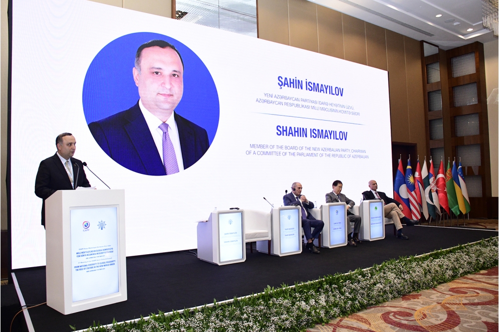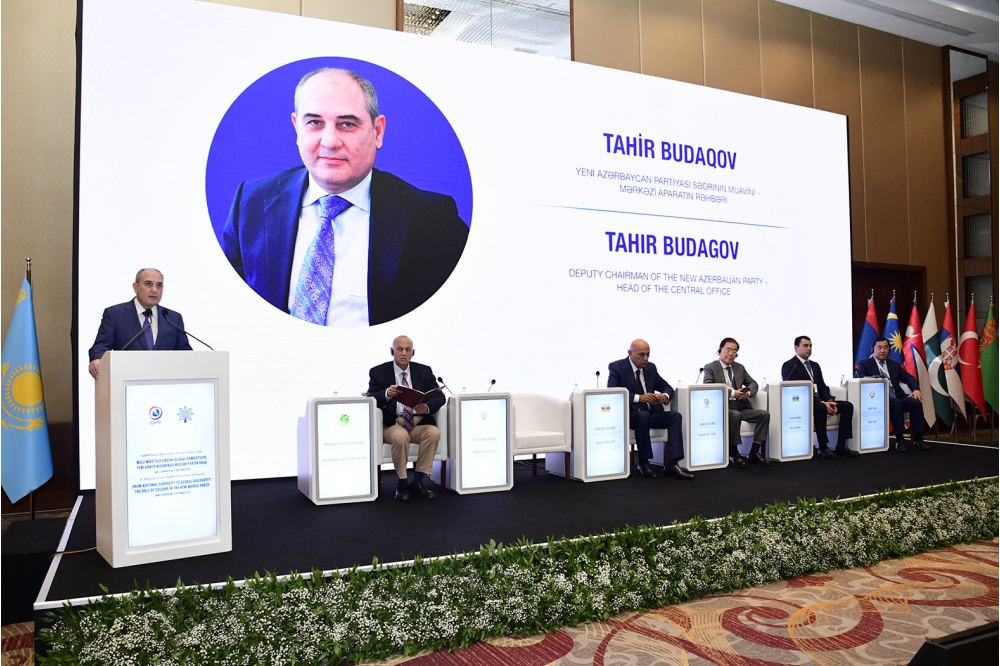 YAP Sədrinin müavini vurğulayıb ki, müasir dövrdə beynəlxalq münasibətlər sistemində ciddi geostrateji dəyişikliklər baş verməkdədir. Onun sözlərinə görə, qlobal kataklizmlər, çoxsaylı təhdid və çağırışlar fonunda yeni dünya nizamına transformasiya məsələsi aktual müzakirə predmetinə çevrilmişdir: “Dünyada hərbi-siyasi konfrontasiyaların, humanitar böhranların, dini və etnik müstəvidə bir çox  ziddiyyətlərin yaşandığı bir dönəmdə müxtəlif mədəniyyətlərin daşıyıcısı olan xalqlar arasında sabitlik və tərəqqi naminə dialoq prosesi ümumbəşəri dəyərlərin qorunması və ölkələrin təhlükəsizliyi baxımından müstəsna əhəmiyyət kəsb edir”.