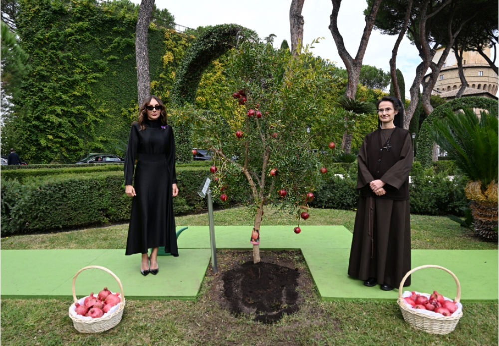 Oktyabrın 17-də Azərbaycan Respublikasının Birinci vitse-prezidenti Mehriban Əliyeva və ailə üzvləri Vatikan şəhər-dövlətinin qubernatorluğunun prezidenti, rahibə Raffaella Petrini ilə birgə Vatikan bağlarında ağacəkmə mərasimində iştirak ediblər.