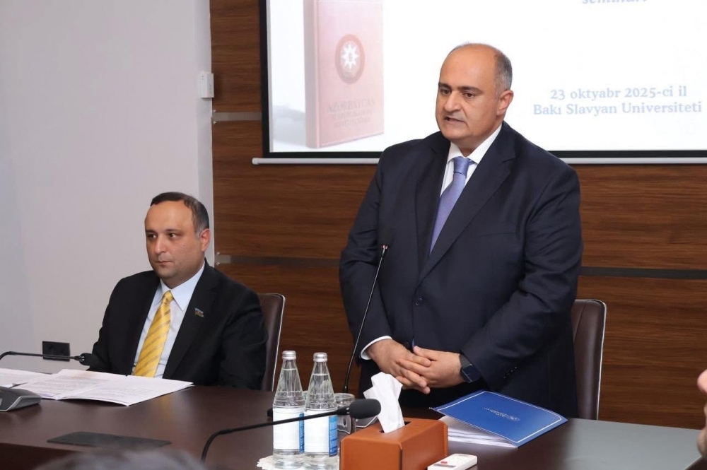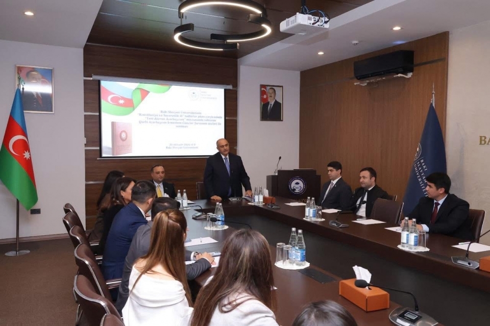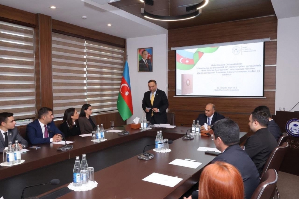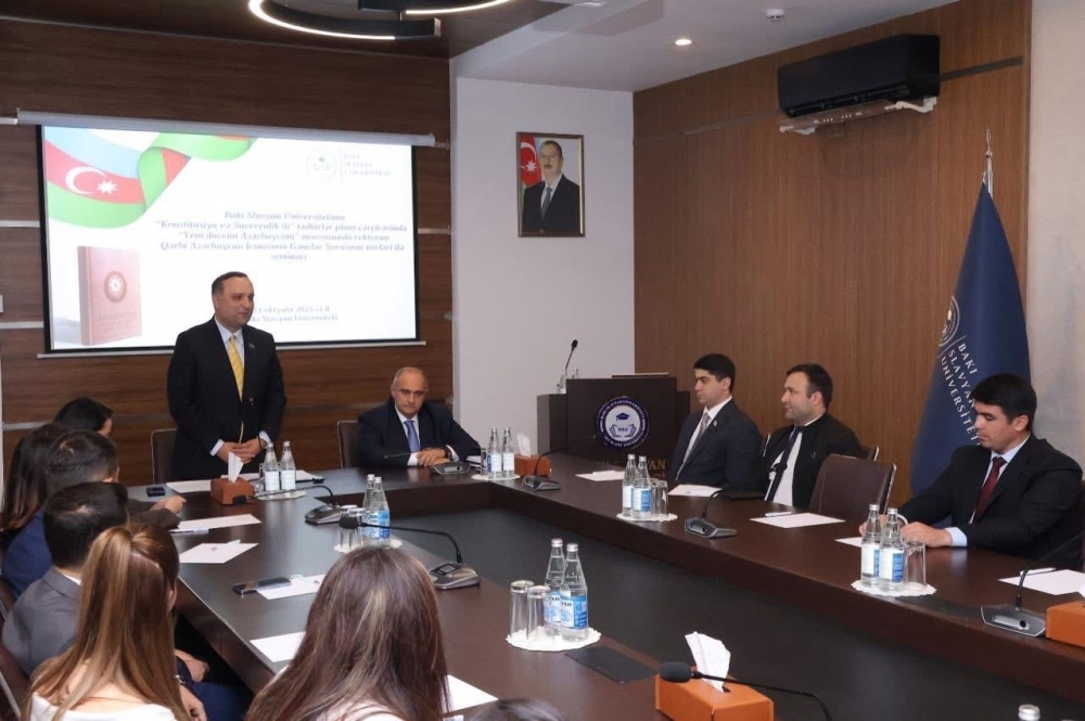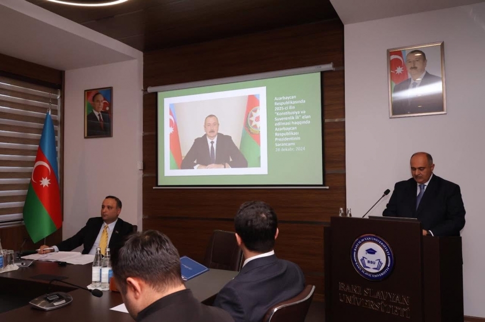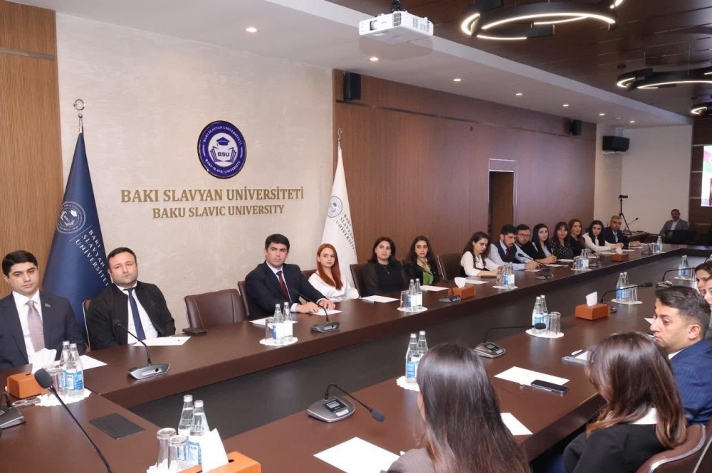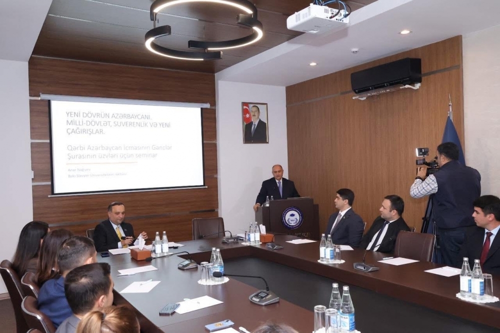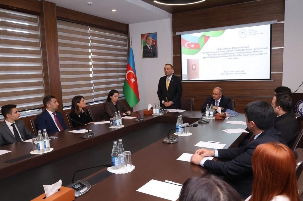 Oktyabrın 23-də Bakı Slavyan Universitetində (BSU) “Konstitusiya və Suverenlik İli” Tədbirlər Planı çərçivəsində BSU-nun Qərbi Azərbaycan İcmasının Gənclər Şurasının birgə təşkilatçılığı ilə universitetin rektoru Anar Nağıyevin “Yeni Dövrün Azərbaycanı, milli dövlət, suverenlik və yeni çağırışlar” mövzusunda seminarı keçirilib.