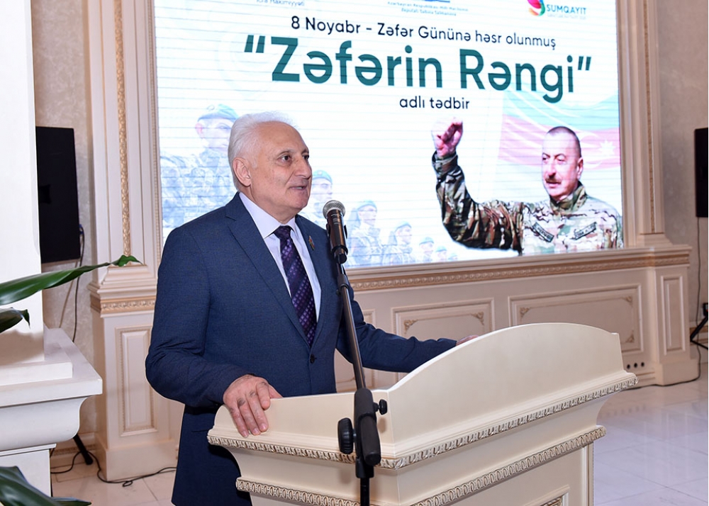 Sumqayıt şəhərində 8 Noyabr – Zəfər Günü ilə əlaqədar təşkil olunan “Zəfərin rəngi” adlı tədbirdə “44 Zəfər Plakatı” rəsm sərgisi açılıb.