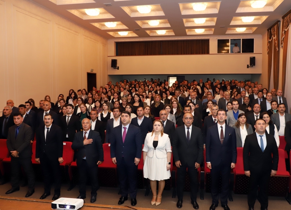 “İki sahil” xəbər verir ki, tədbir Azərbaycan Respublikasının Dövlət Himninin səsləndirilməsi və şəhidlərin əziz xatirəsinin bir dəqiqəlik sükutla yad olunması ilə başlayıb.