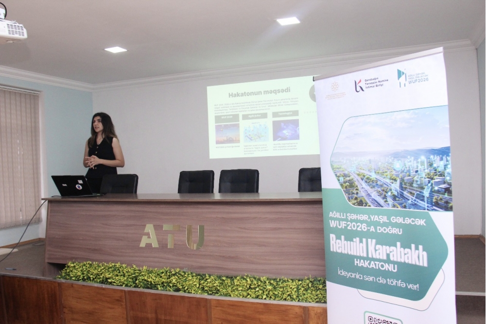“Ağıllı şəhər, yaşıl gələcək: WUF 2026-a doğru” layihəsi çərçivəsində “Rebuild Karabakh” hakatonuna həsr olunmuş infosessiyalar ölkənin bir sıra ali təhsil müəssisələrində - Azərbaycan Texniki Universiteti, Azərbaycan-Fransız Universiteti (UFAZ), Bakı Mühəndislik Universiteti, Sumqayıt Dövlət Universiteti, Gəncə Dövlət Universiteti, Azərbaycan Dövlət Aqrar Universiteti və Azərbaycan Texnologiya Universitetində (UTECA) təşkil olunub.