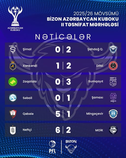 Bu gün Azərbaycan kubokunda 2-ci təsnifat mərhələsinə yekun vurulub.