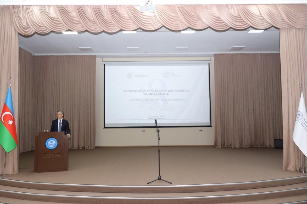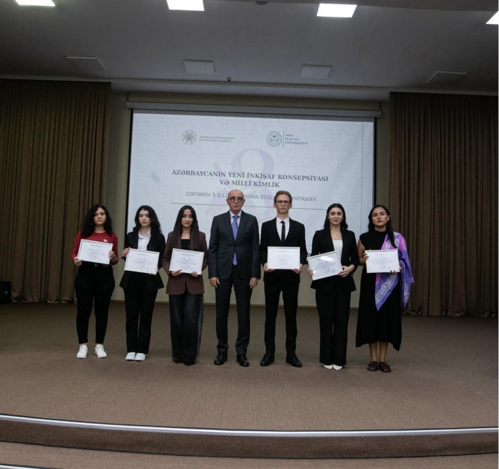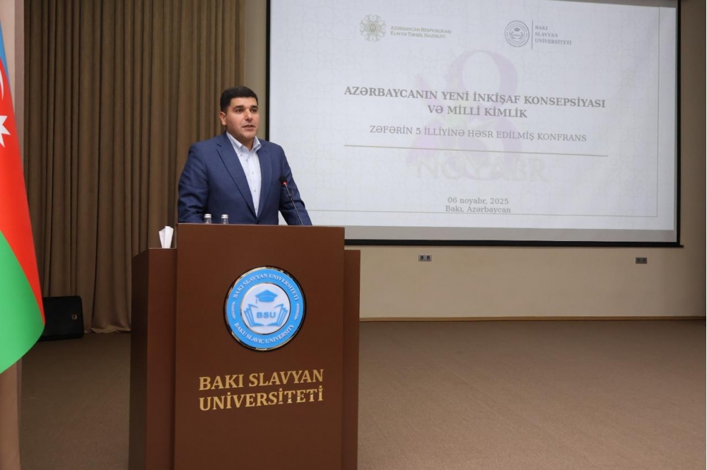 Noyabrın 6-da Bakı Slavyan Universitetində (BSU) “Zəfər Həftəsi” çərçivəsində “Konstitusiya və Suverenlik İli" Tədbirlər Planına uyğun olaraq Zəfərin 5 illiyinə həsr olunmuş " Azərbaycanın Yeni İnkişaf Konsepsiyası və Milli Kimlik " mövzusunda konfrans keçirilib. Konfransda BSU-nun rektoru Anar Nağıyev, elm və təhsil nazirinin müavini Firudin Qurbanov, Milli Məclisin deputatları Sahib Alıyev, Zahid Oruc, Azərbaycan Respublikasının Prezidenti yanında Dövlət İdarəçilik Akademiyasının(DİA) rektoru Urxan Ələkbərov, Cənubi Qafqaz Tədqiqatlar Mərkəzinin (CQTM) direktoru Fərhad Məmmədov, BSU-nun professor-müəllim heyəti, tələbələri və digər universitetlərin tələbələri də iştirak ediblər.
