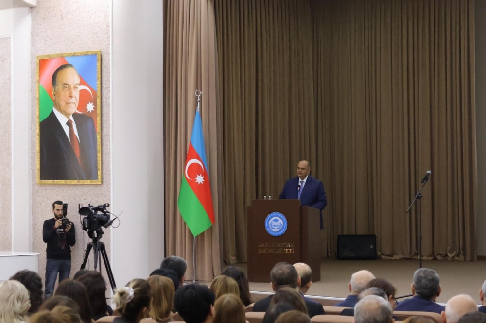 Açılış nitqi ilə çıxış edən BSU-nun rektoru Anar Nağıyev iştirakçıları qarşıdan gələn bayramlar münasibətilə təbrik edərək, Zəfərin 5 illik yubileyinin milli qürur və məsuliyyət hissi ilə qeyd olunduğunu vurğulayaraq bu Zəfərin bizə yaşatdığı sevinc həm də böyük məsuliyyət yaratdığını qeyd edib.