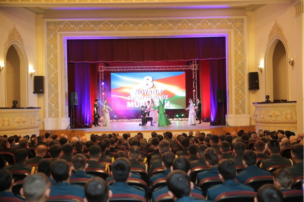 Daha sonra tədbirin rəsmi hissəsinə keçid edilərək Dövlət Himni səsləndirilib və ölkəmizin ərazi bütövlüyü və suverenliyi uğrunda mübarizədə canlarını qurban verən şəhidlərimizin xatirəsi bir dəqiqəlik sükutla yad edilib. Sonra tədbirdə şanlı zəfərimizə, tarixi qələbəmizə həsr olunmuş “Qızıl payız” adlı sənədli film nümayiş etdirilib. Tədbirdə giriş sözü ilə çıxış edən Rayon İcra Hakimiyyətinin başçısı Elşən Salahov “8 Noyabr – Zəfər Günü” ilə bağlı tədbir iştirakçılarını təbrik edərək 44 günlük Vətən Müharibəsinin Azərbaycanın tarixinə qızıl hərflərlə əbədi yazıldığını, bu qələbənin Azərbaycan Respublikasının Prezidenti, Müzəffər Ali Baş Komandan cənab İlham Əliyevin qətiyyəti, siyasi iradəsi, yenilməz ordumuzun şücaəti, qəhrəmanlığı, qorxmaz, cəsur əsgərlərimizin canı, qanı bahasına, xalqımızın birliyi hesabına qazanıldığını qeyd edib. Həmçinin, konstitusiya quruluşunun bərpa edilməsi məqsədilə Qarabağ bölgəsində lokal xarakterli antiterror tədbirlərinin uğurla başa çatması nəticəsində Azərbaycanın öz suverenliyini bir daha bərpa etdiyini vurğulayıb.