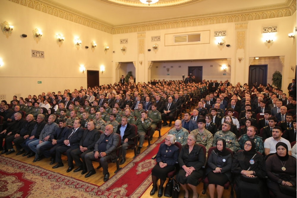Rayon İcra Hakimiyyətinin təşkilatçılığı ilə keçirilən tədbirdə Rayon İcra Hakimiyyətinin başçısı Elşən Salahov, YAP Xəzər rayon təşkilatının sədri Namiq Əhmədov, hüquq-mühafizə orqanlarının rəhbərləri, qəsəbə inzibati ərazi dairələri üzrə nümayəndələri, bələdiyyə sədrləri, Şəhid ailələri, qazilər və müharibə iştirakçıları, rayonun idarə-təşkilat, təhsil və səhiyyə müəssisələrinin rəhbərləri, Daxil İşlər Nazirliyinin Polis Akademiyasının, Daxili Qoşunların Hərbi İnstitutunun, Milli Aviasiya Akademiyasının müəllim və tələbə heyəti, ziyalılar, gənclər və ictimaiyyət nümayəndələri iştirak edib.