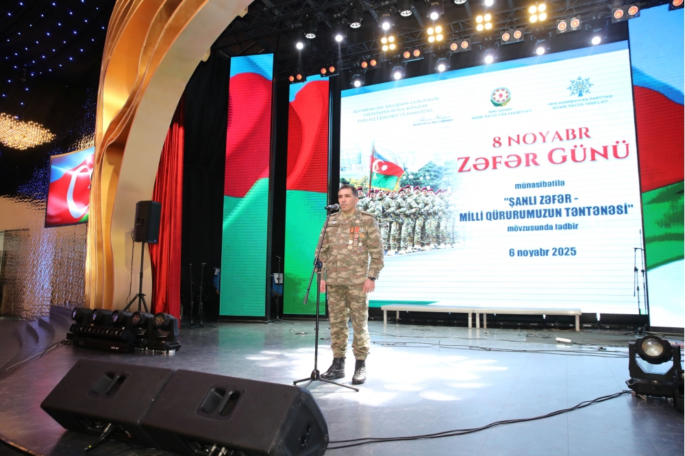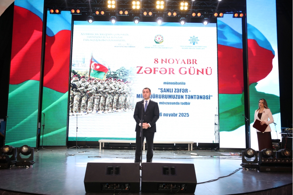 Nizami Rayon İcra Hakimiyyətinin və Yeni Azərbaycan Partiyası Nizami rayon təşkilatının birgə təşkilatçılığı ilə 8 Noyabr – Zəfər Gününün 5-ci ildönümü münasibətilə "Şanlı Zəfər – milli qürurumuzun təntənəsi" mövzusunda tədbir keçirilib.