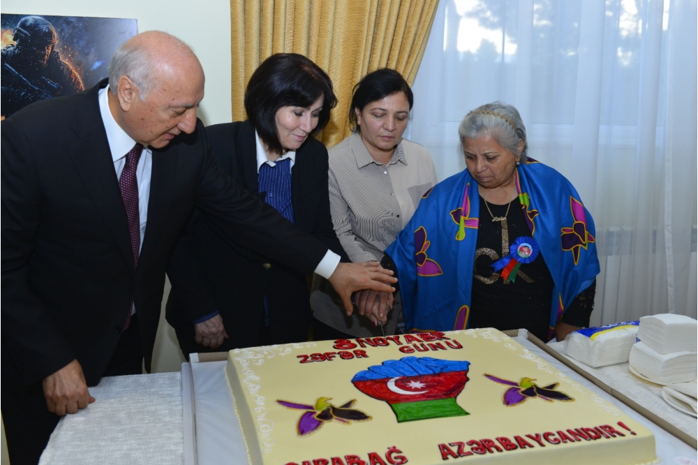 Tədbirdə Birinci Qarabağ müharibəsində həyat yoldaşı şəhid olmuş Təranə Əhlimanova, İkinci Qarabağ müharibəsində oğlu şəhidlik zirvəsinə yüksəlmiş Tərlan Əliyeva, Birinci Qarabağ müharibəsi veteranı Məhəmməd Behbudov, İkinci Qarabağ müharibəsi qazisi Ramiz Qasımov Zəfər Gününün tarixi və mənəvi əhəmiyyətinə toxunublar. Onlar qeyd ediblər ki, 8 Noyabr Azərbaycan xalqının qəhrəmanlıq salnaməsidir və bu tarix gələcək nəsillər üçün vətənpərvərlik nümunəsidir. Çıxışlarda şəhidlərin əziz xatirəsinin daim uca tutulacağı, qazilərə və müharibə iştirakçılarına göstərilən diqqətin davam etdiriləcəyi bildirilib.
