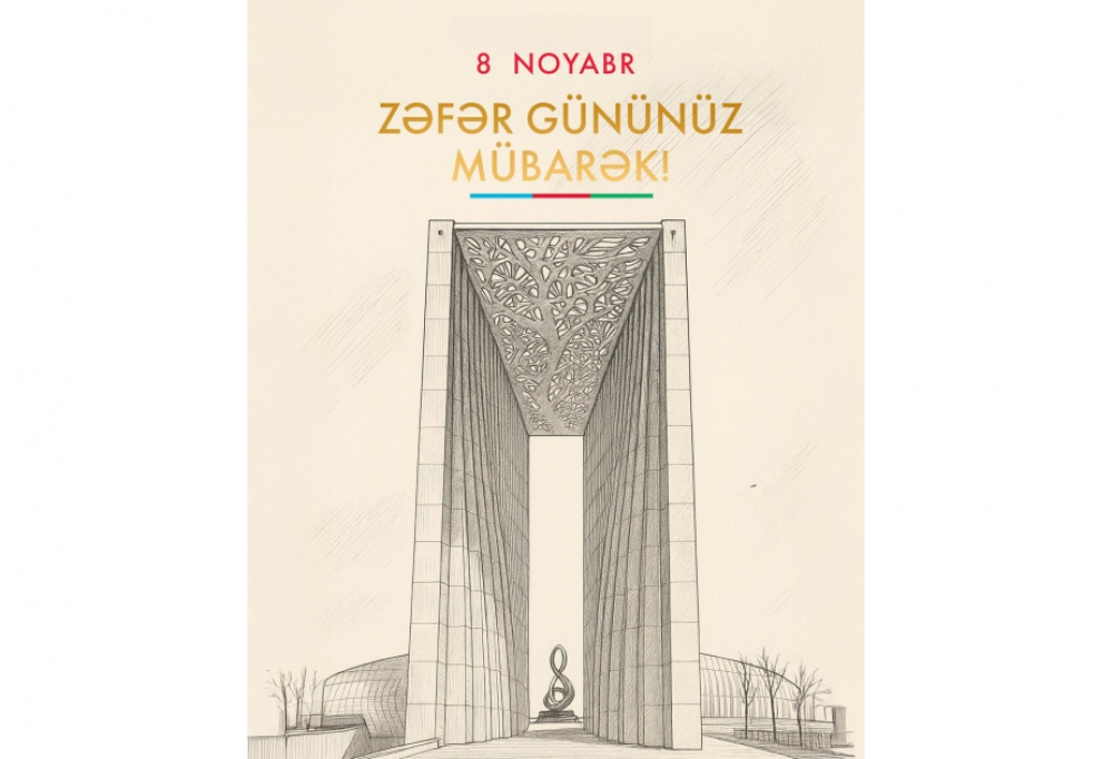 "Əziz həmvətənlər! Vətən müharibəsində əldə edilən şanlı Zəfərin beşinci ildönümü münasibətilə hər birinizi səmimi-qəlbdən təbrik edirəm! Bugünkü bayramı qəhrəman xalq kimi başımız uca qeyd etdiyimizə görə bizim Prezidentimizə, cəsarətli əsgər və zabitlərimizə təşəkkür edirəm! Allah Vətən uğrunda həlak olmuş bütün şəhidlərimizə rəhmət eləsin! Uca Tanrı xalqımızı və Vətənimizi qorusun!"