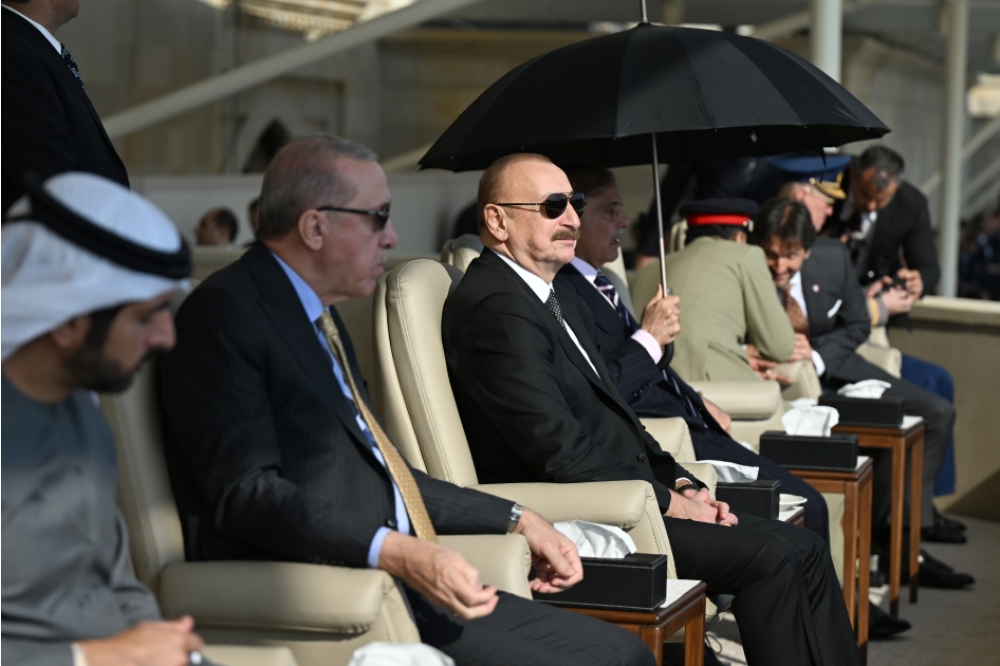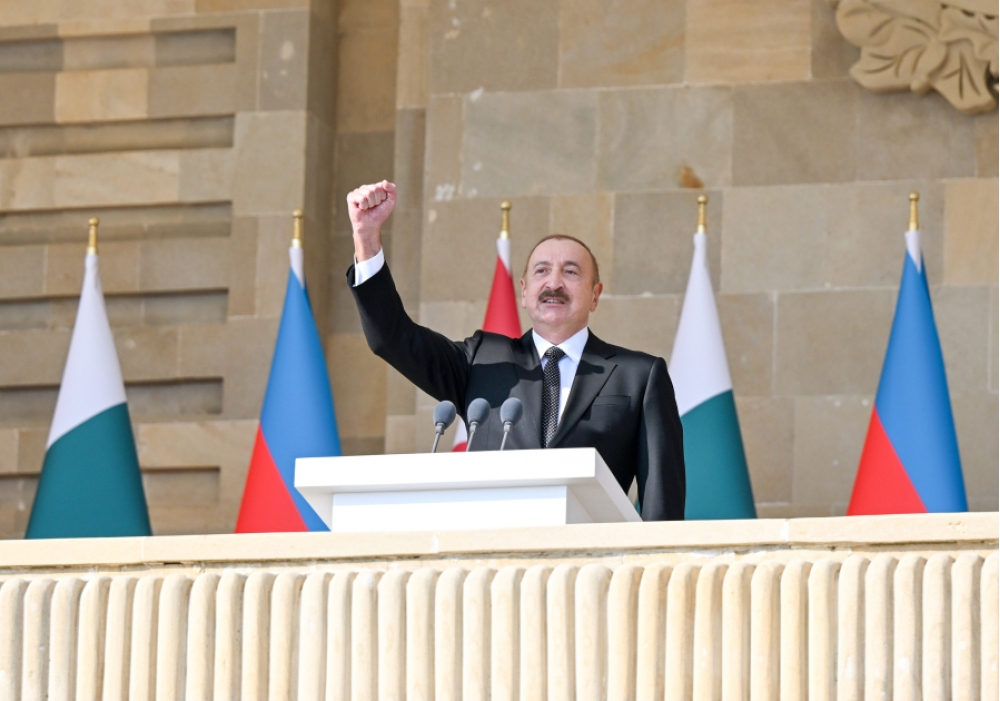 “İki sahil” xəbər verir ki, Azərbaycan Respublikasının Prezidenti İlham Əliyev, birinci xanım Mehriban Əliyeva, Türkiyə Respublikasının Prezidenti Rəcəb Tayyib Ərdoğan, Pakistan İslam Respublikasının Baş naziri Məhəmməd Şahbaz Şərif paradda iştirak edirlər.